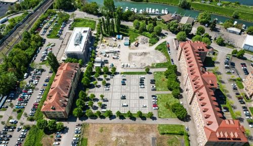 Der Platz mit seinen großen Pflastersteinen ist ein gestalterisches Element zwischen den beiden denkmalgeschützten ehemaligen Kasernengebäuden. Während der Landesgartenschau war er Teil des Veranstaltungsbereichs und sollte auch danach für Konzerte und Festivals genutzt werden. Seit der Corona-Pandemie hat dort jedoch nichts mehr stattgefunden und so wurde der Platz schleichend mehr und mehr zu einer Parkfläche.