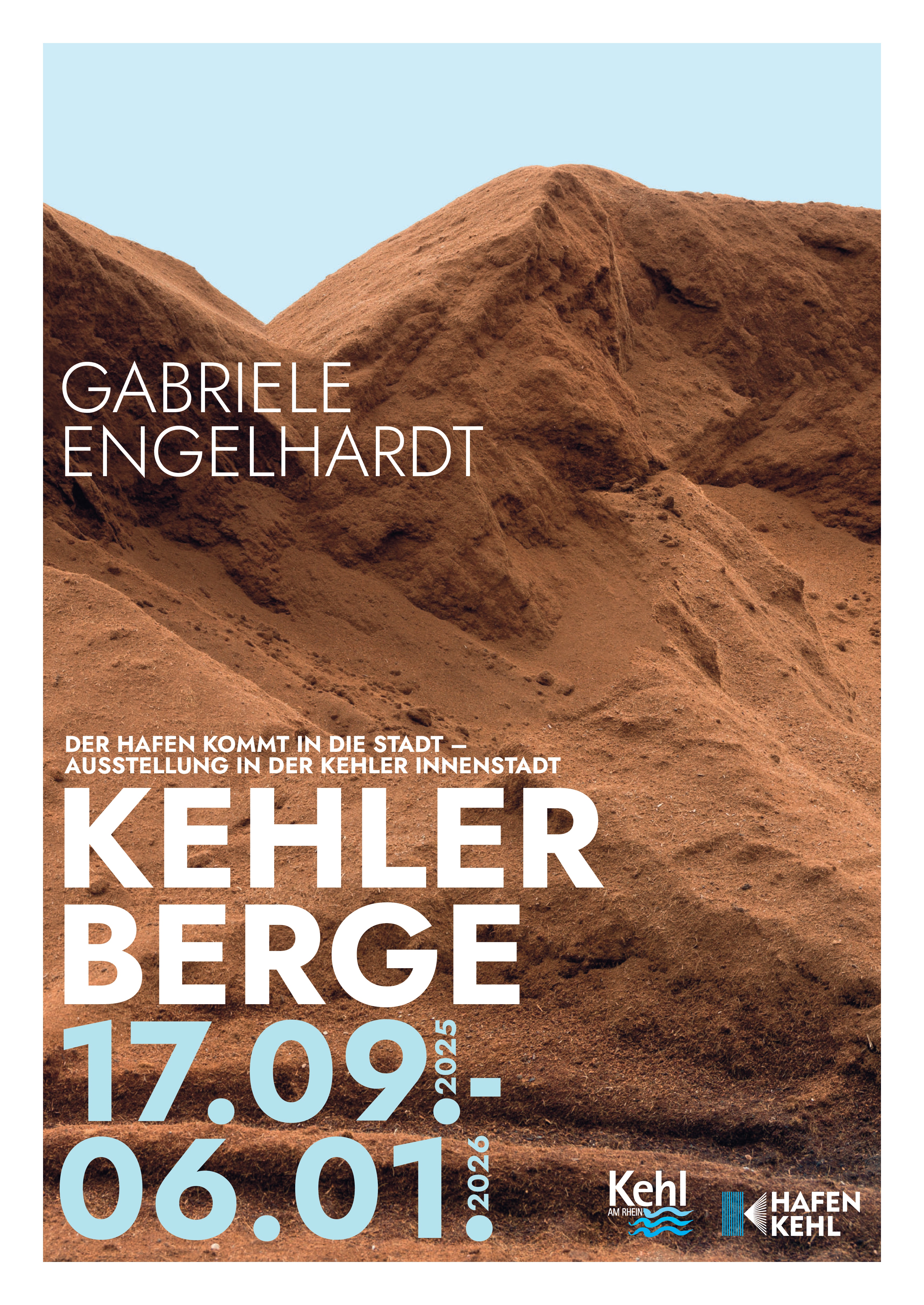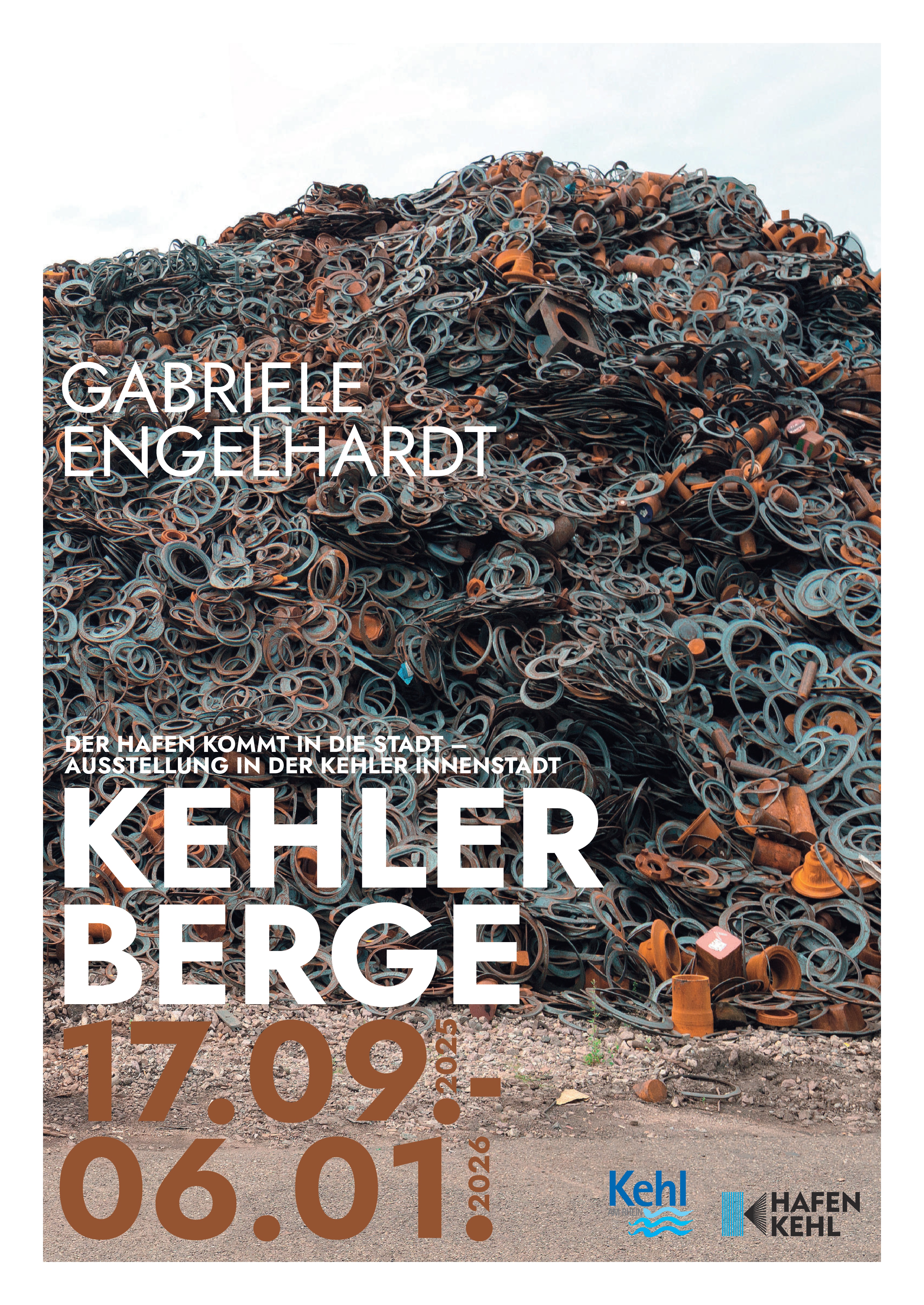 Die Berge im Kehler Hafen sind von Menschen aufgeschichtete Rohstoffe und Recyclingmaterialien. Sie dienen in erster Linie der Stahl- und Papierproduktion. Diese Kehler Berge kommen aus allen Teilen der Welt (Südamerika, Asien und Europa) und sie lagern zu Haufen und Bergen geschoben im Hafen Kehl, die im Prozess des Anlieferns, Ablieferns, Weitertransportierens und Verschiebens beständig bewegt, verändert, neu gehäuft, geformt, geschichtet, verbreitert oder verschmälert, erhöht oder abgetragen werden. So entstehen täglich und auch sogar über Nacht beständig neue Hügel- und Materialformationen. Manchmal verschwinden über Nacht riesige Berge und am nächsten Tag stehen wieder neue da. Rund um den Globus werden die Rohstoffe und Recyclingmaterialien gesammelt, verschifft, aufgehäuft und dann wieder einem Produktionskreislauf zugeführt. Ihr jetziger Platz im Kehler Hafen ist also vorläufig und zeitlich begrenzt. Gabriele Engelhardt begleitet das Versetzen der Berge bereits seit rund zehn Jahren. Dabei hat sie eine Technik entwickelt, die den riesigen Dimensionen dieser Rohstoffberge versucht, gerecht zu werden. Aus bis zu 1000 Einzelaufnahmen tastet Sie die Bergformationen akribisch ab und modelliert und collagiert sie dann am Computer zu einer fotografischen Skulptur. Denn ihr Interesse zielt auf die