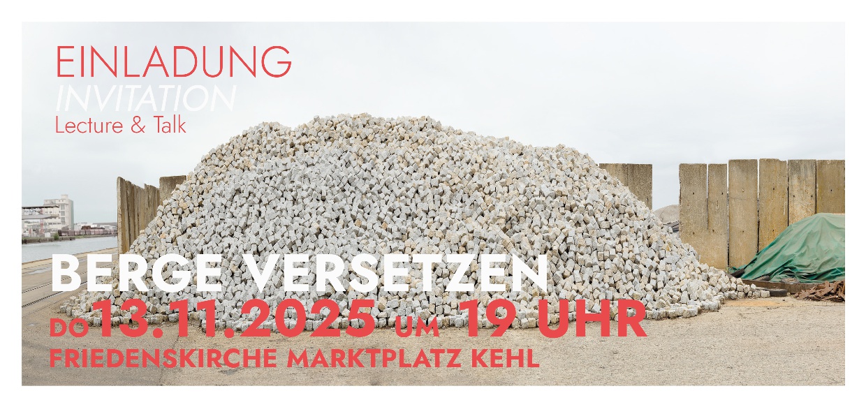 Les montagnes du port de Kehl sont constituées de matières premières et de matériaux recyclés empilés par l'homme. Elles servent principalement à la production d'acier et de papier. Ces montagnes de Kehl proviennent des quatre coins du monde (Amérique du Sud, Asie et Europe) et sont stockées en tas et en montagnes dans le port de Kehl, où elles sont constamment déplacées, modifiées, réempilées, remodelées, stratifiées, élargies ou rétrécies, surélevées ou rabaissées au cours du processus de livraison, de déchargement, de transport et de déplacement. Ainsi, chaque jour et même chaque nuit, de nouvelles formations de montagnes et de matériaux apparaissent. Parfois, d'énormes montagnes disparaissent pendant la nuit et le lendemain, de nouvelles apparaissent. Partout dans le monde, les matières premières et les matériaux recyclables sont collectés, expédiés, empilés, puis réintroduits dans un cycle de production. Leur emplacement actuel dans le port de Kehl est provisoire.Gabriele Engelhardt accompagne le déplacement des montagnes depuis environ dix ans déjà. Elle a développé une technique qui tente de rendre justice aux dimensions gigantesques de ces montagnes de matières premières. À partir de jusqu'à 1 000 clichés individuels, elle scanne méticuleusement les formations montagneuses, puis les modélise et les assemble sur ordinateur pour créer une sculpture photographique. Son intérêt porte en effet sur le lien entre la sculpture et la photographie et sur la question connexe de savoir comment créer de la plasticité sur une surface bidimensionnelle. « Esthétique et spiritualité dans l'art contemporain aux XXe et XXIe siècles » est le titre de la conférence du professeur Jérôme Cottin (Université de Strasbourg). Il parlera des ruptures et des innovations dans l'art contemporain. De l'abstraction au ready-made de Marcel Duchamp, en passant par l'Arte Povera et le street art, il fera référence aux photographies de Gabriele Engelhardt à travers différents points clés. Il explorera la dimension spirituelle des montagnes de Kehl. Les concepts abordés tournent autour des déchets glorifiés, de la métaphore de la montagne, du lien entre diversité et unité et de la responsabilité de l'homme envers la nature et l'environnement.À l'issue de la manifestation, il sera possible de discuter avec tous les participants. Une collation sera servie.