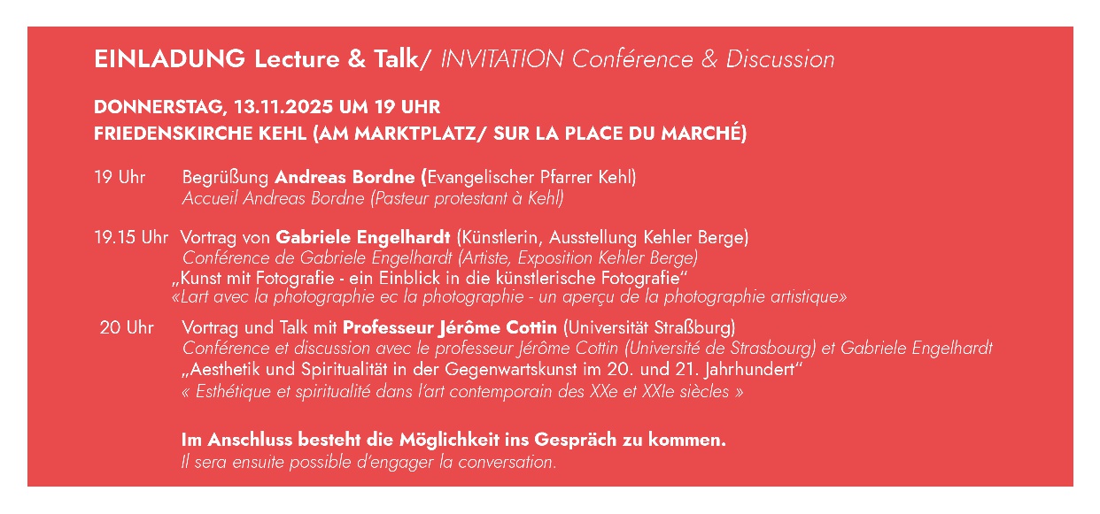 Conférence et discussion avec l'artiste le 13 novembre 2025 à 19 h à la Friedenskirche de Kehl.